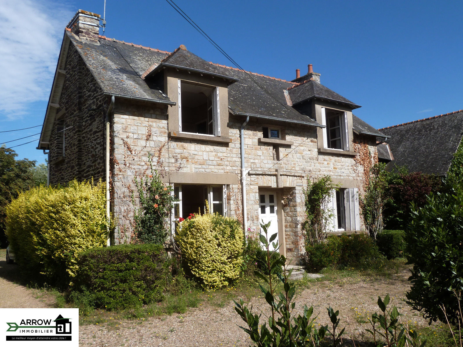 L'équipe Arrow Immobilier de Bruz (35170) Vous propose en *EXCLUSIVITE* à Saint-Jacques-de-la-Lande (35136) commune de Rennes Métropole proche de l'axe Rennes-Redon à 5 minutes du futur métro et de Rennes (35000), ce bien exceptionnel. Laissez vous séduire par le charme de la pierre de cette maison des années 40 située à proximité des commerces mais aussi dans un écrin de verdure. Venez vous y installer avec toute votre famille et profiter de son emplacement de premier choix. Cette maison de 119m2 habitables vous offre d'énormes potentiels aussi bien au niveau de la maison elle-même mais aussi de ses nombreuses dépendences, hangar de 140m² (idéal camping-car), garage,etc.... Elle se compose au rdc d'une cuisine, une arrière cuisine, une belle salle à manger, un salon avec cheminée exposé est-ouest, une salle d'eau, wc. A l'étage vous y trouverez 4 très belles chambres, une salle de bains avec wc, le tout sur un terrain de plus de 3000m2. Scolarité assurée de la maternelle au collège, réseau STAR, gare SNCF.