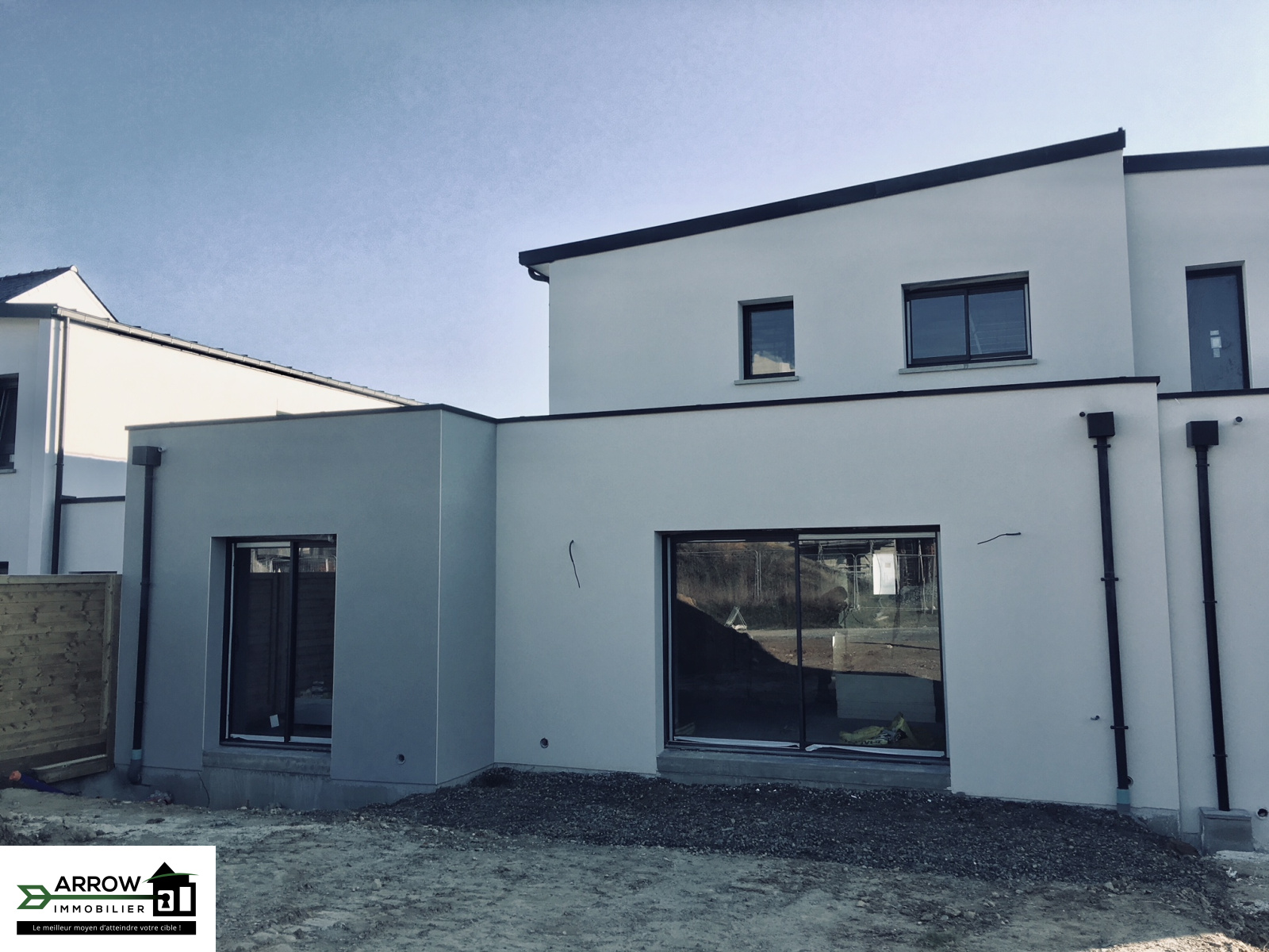 *EXCEPTIONNEL* L'équipe Arrow Immobilier de Bruz (35170) vous propose en *EXCLUSIVITE* au Rheu (351650) commune de Rennes Métropole proche l'axe Rennes-Lorient (RN 24), cette maison en VEFA de 115m² sur un terrain de 299m². Elle se compose au rez de chaussée d'une belle pièce de vie de 50m² avec cuisine A/E, une suite parentale avec salle d'eau privative, un garage. A l'étage : trois chambres, une salle de bain avec douche et baignoire. Concernant les extérieurs vous profiterez d'un jardin engazonné et clôturé avec un accès directe à un chemin piéton vous permettant d'accèder rapidement aux commerces de centre-ville (500m). Vous bénéficierez d'une construction de qualité: toit en zinc de couleur noir, fenêtre en aluminium, chauffage et eau chaude via une pompe à chaleur. Possibilité en fonction de l'avancement des travaux de choisir le carrelage, la faïence et la façade de cuisine. Livraison prévu début Mars 2019, Profitez de toutes les commodités : Réseau STAR, gare SNCF, écoles jusqu'au lycée, commerces de proximité et grandes surfaces ainsi que de nombreux équipements sportifs, terrain de foot, golf etc....... Ce bien vous est présenté par l'Agence Arrow Immobilier de Bruz (35170) Rue Siméon Poisson au prix de 324990€ FAI dont 3,5% d'honoraires à la charge de l'acquéreur - Erwan GUIHO - Espace Acquéreurs - 07.83.84.33.83. N'oubliez pas le meilleur moyen d'atteindre votre cible: Arrow Immobilier.